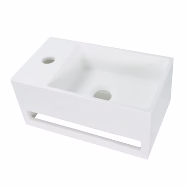 Solid Surface Waschbecken + Handtuchhalterung Hahnloch Rechts 36x20x16cm