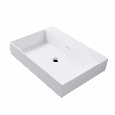 Waschbecken WONDA 80 cm mattweiß Polyresin quadratisch ohne Hahnloch mit Überlauf