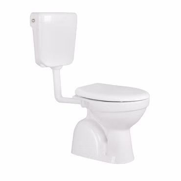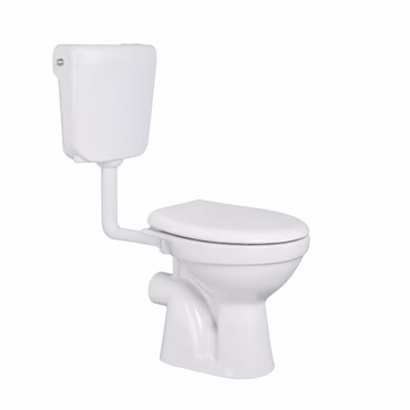 Stand-WC mit Taharetfunktion und waagerechtem Wandabgang inkl. Keramik-Spülkasten & Softclose WC-Sitz – Komplettset