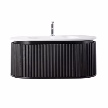 Belvit Waschbecken Set 100 cm Keramik Aufsatz oder Wandmontage mit Überlauf und Hahnloch inklusive Sovena Badunterschrank Schwarz Matt