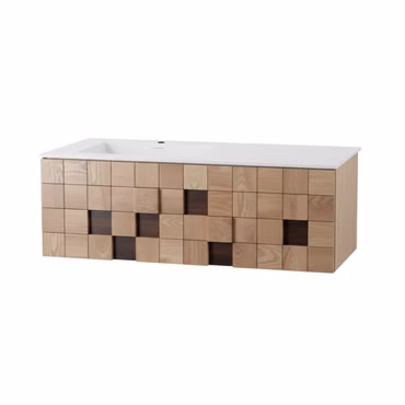 Waschbecken Set WONDA SQUARE SLIM 120 cm mit KAMELIA Unterschrank Nussbaum mattweiß modern Softclose