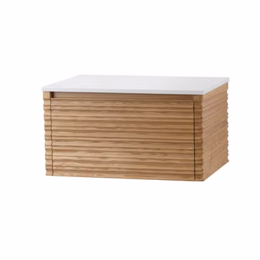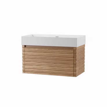 Waschbecken Set Wonda 80 cm mattweiß mit Kamelia Unterschrank Nussbaum Softclose grifflos