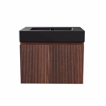 Waschbecken Set BELVIT 80 cm Mattschwarz mit Unterschrank Wenge Softclose Schublade